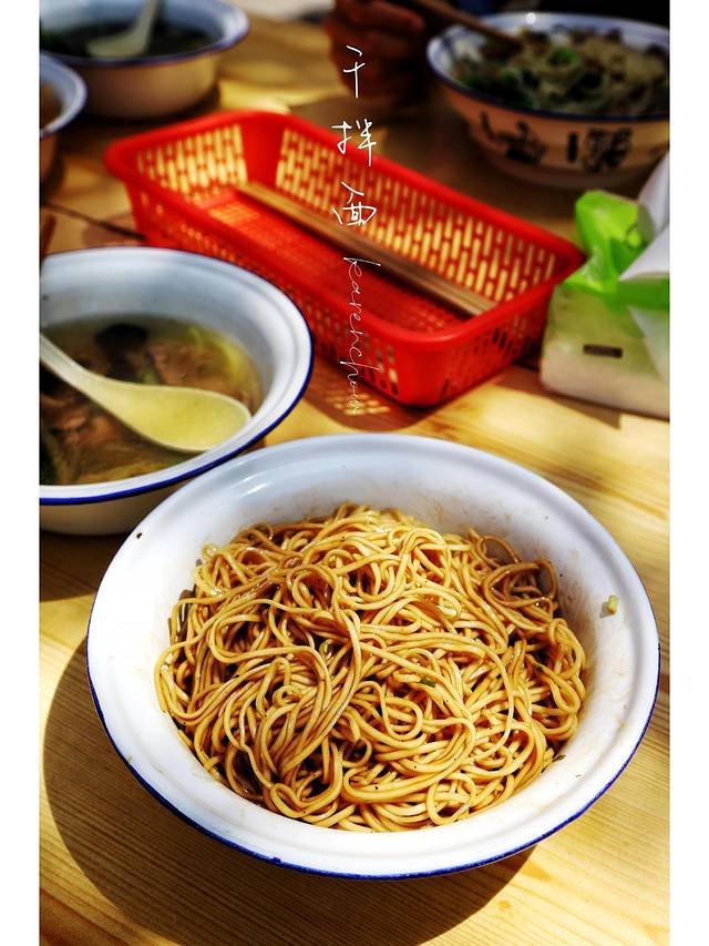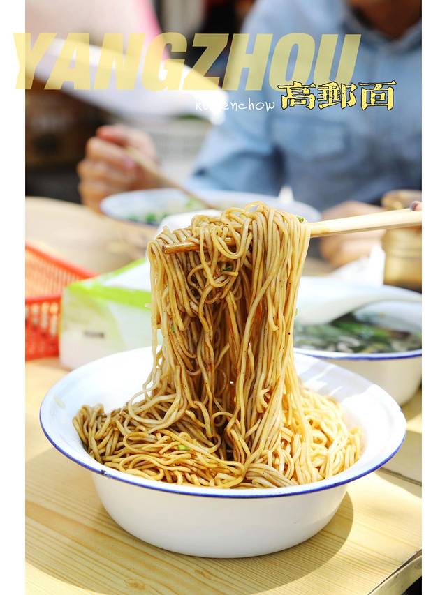 高邮面,在扬州到处都可以看到,查了一下,它是扬州高邮比较有名的小吃,和长沙拌面有一丢丢像,其实就是阳春面用葱油和豉油拌一拌,就着各种汤一起吃。