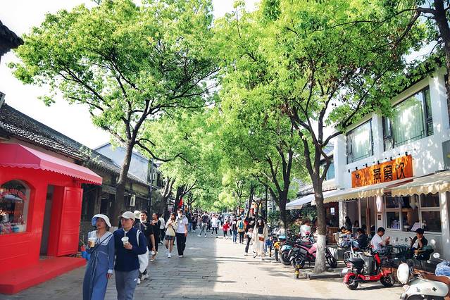 皮市街,位于何园附近,距离关东街也是近在咫尺,街道不长,遍布着大大小小的个性小店,有美食,有咖啡,有花店,有书店,还有复古店,都各有各的调调,似乎每一家都有值得打卡的机位。