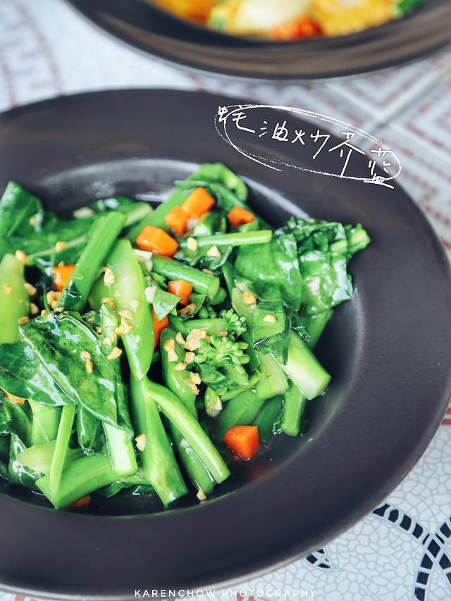 蚝油炒芥蓝,爽脆微甜,也是相当好吃。