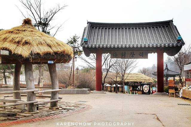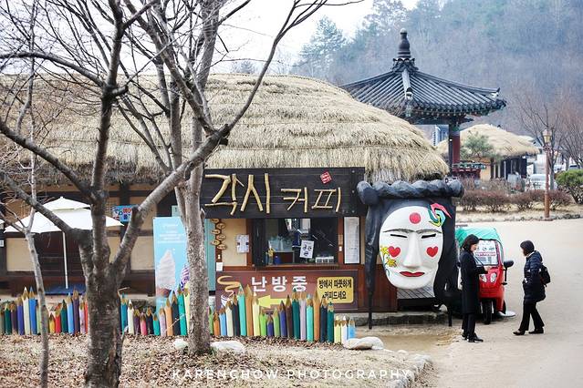 (↑一路走入河回村。可惜我们是冬季来,看着一片荒芜,但是在4月份,看图片中这条路,可将全部开满樱花哦,大家脑补一下!!)