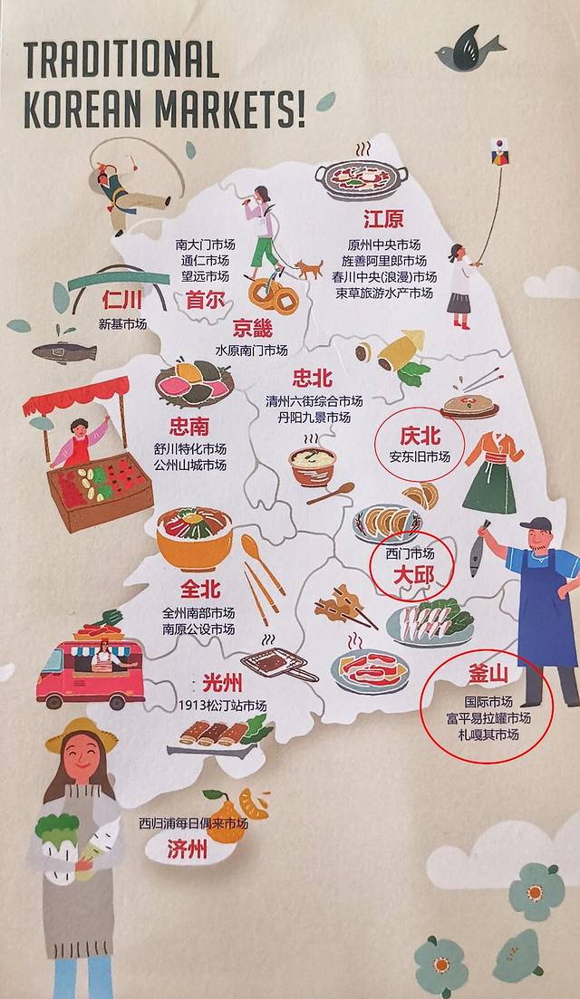 这回我们主要走了釜山、大邱和安东三个地方的5大传统市场,3天时间虽然不长,但籍着“传统市场”是韩国传统文化的集中所在,让我对韩国的美食与人文都有了更深的认识。