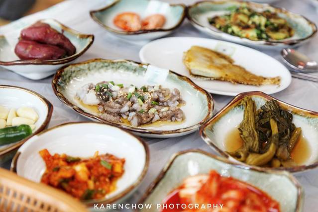 有各种用海产品做成的酱料或小菜。有些酱料可以直接用来拌饭吃,导游jackie一直介绍说用带鱼内脏做的调料非常好吃。