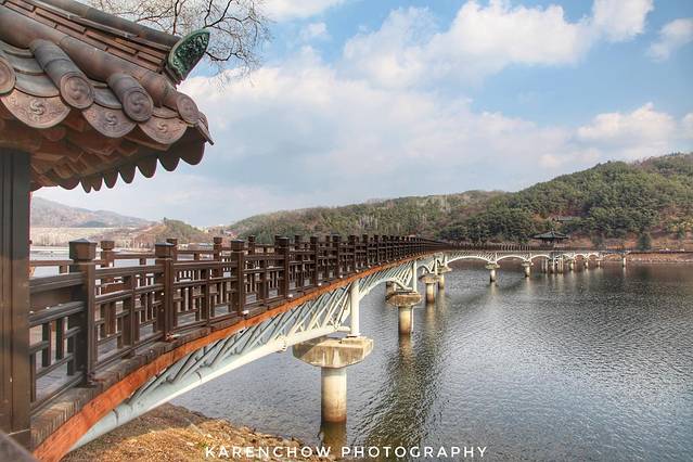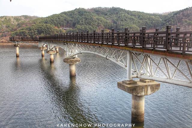 月映桥建于2003年,长387米、宽3.6米,是韩国国内最长的木栅步行桥。