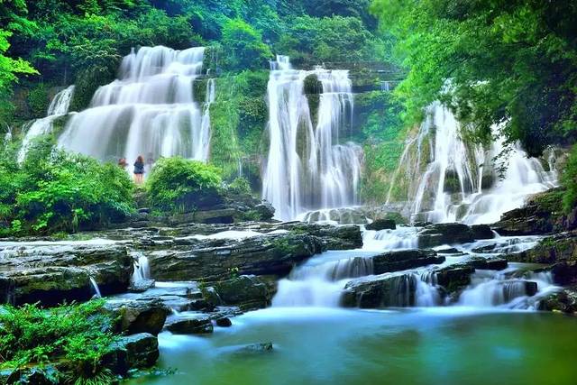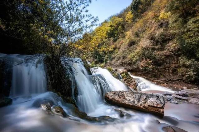 米底河瀑布集山、水、瀑布为一体,有“小黄果树瀑布”之美称,河床之中怪石嶙峋,水清见底。两岸茂树参天,藤蔓青翠,时有鸟鸣之声,回响其间,形成了一幅美丽的山水自然风光。