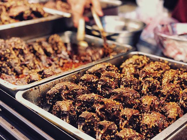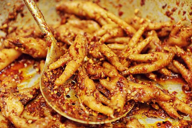 这里有各种口味的鸡爪、脚掌、兔头、鸭头、鸡翅膀、鸭翅膀、猪蹄、鸭腿……总之就是各种小动物们的头啊手啊脚啊(可怕,画风要偏了,拉住我!)……
