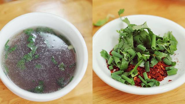 这个朴素而地道的干碟不用多讲,点睛之笔!而承载他们的精华就是烫了!原汤一定是看起来黒黑的,脏脏的,味道才是棒棒的!(我在成都吃到过好些汤熬成乳白色的跷脚牛肉,我放弃评价。)