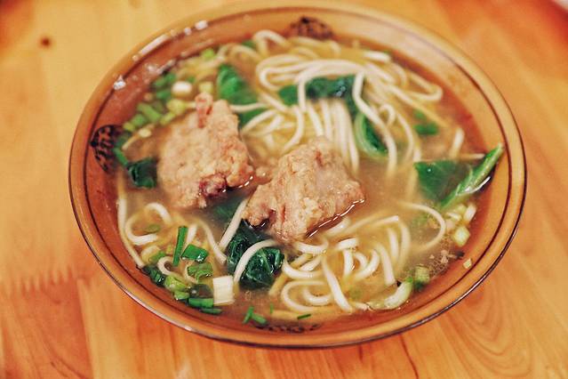 这是我唯一爱吃的清汤面,它的排骨是酥过的,排骨上 的淀粉薄薄一层,恰到好处,配上9分熟的面,我能把烫都干了!