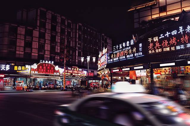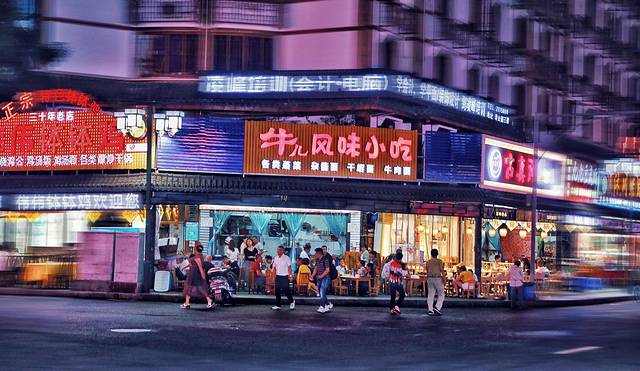 这个画风一下就“夜生活”了哈,毕竟它位于著名的游客打卡街——张公桥美食街。
