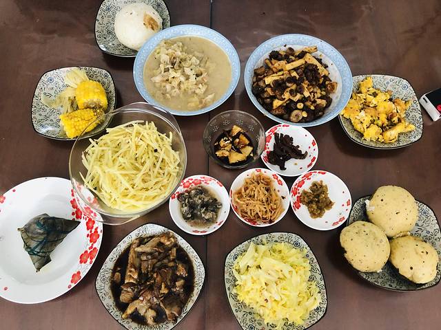 第二天,有两个小伙伴要一早赶飞机。阿姨真的准时来给做了早餐。这还没完,放熬夜到清晨6点睡觉的我们,12点被小七敲门叫醒,起来看见阿姨又已经给我们做好了一桌子的午餐。