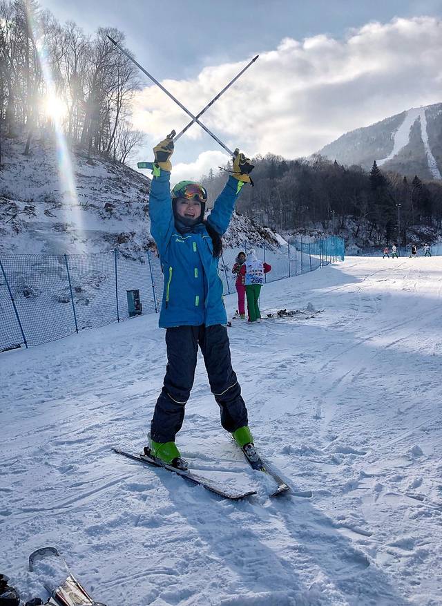 省略中间我不会转弯滑进了小树林,不会让避让摔到了路中间的一些桥段,我还是很有成就感能独自顺利的在中级道滑行走的。1分成就感就完美覆盖了开始的99分恐惧和结束的疲惫~哈哈哈哈,今天又刷新了我的运动盲区,开心开心!