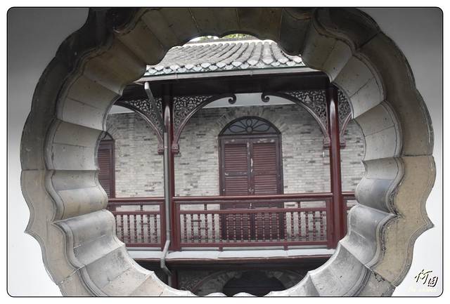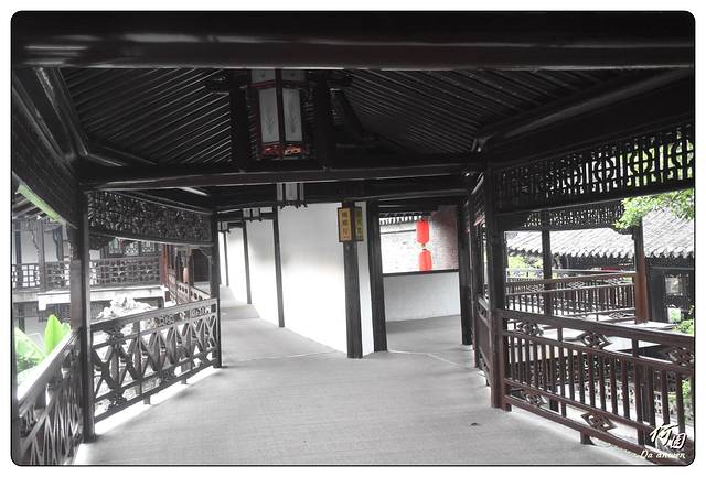 回廊,扬州人俗称串楼,分上、下两层,将东园、西园、住宅院落都串连在一起,廊东南两面墙上关有什锦洞窗和水磨漏窗。