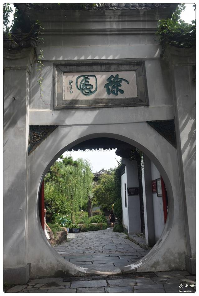 园门如望日的满月,门额书“徐园”两字,一楷一草,别有风味,为吉亮工所书。