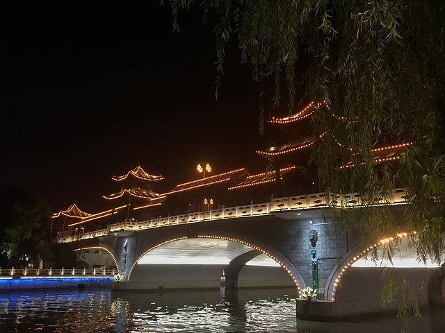 穿过皮市街,慢慢走到古运河欣赏夜景。