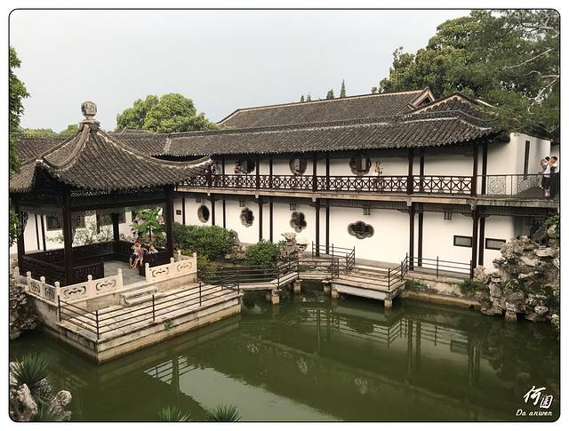 楼旁与复道廊相连,并与假山贯串分隔,廊壁间有漏窗可互见两面的景色。池东有石桥,与水心亭贯通,亭南曲桥抚波,与平台相连。