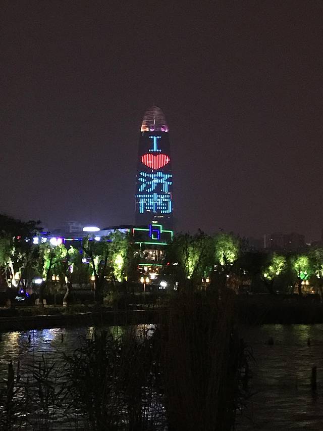 夜幕已经降临,湖边华灯初上。