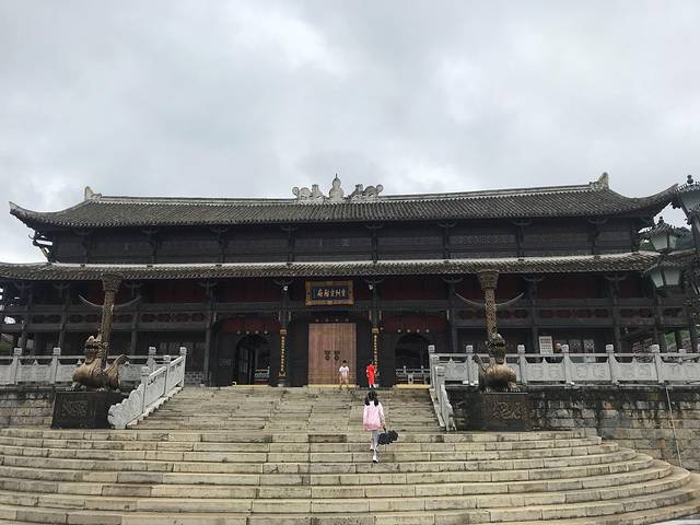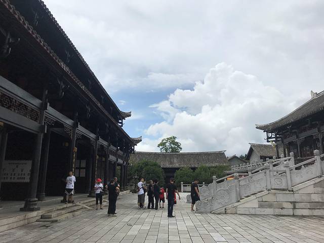 宣慰府的主体建筑,即为“一场八院九层”。宣慰府背靠云龙山,面临螺丝塘,座东北向西南。采用中轴对称的布局,“九层八院”分级跃上,梯级递进。平面俯瞰两头小,中间大,如同虎头的抽象造型,寓意虎跃龙腾。