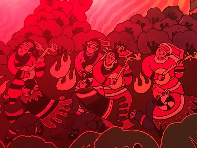 古镇建筑物的墙壁上有很多彝族特色的壁画,值得一看。