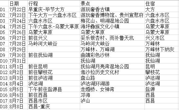 这次的行程想去的几个地方:六盘水乌蒙大草原、马岭河大峡谷、万峰林、抚仙湖、泸沽湖。