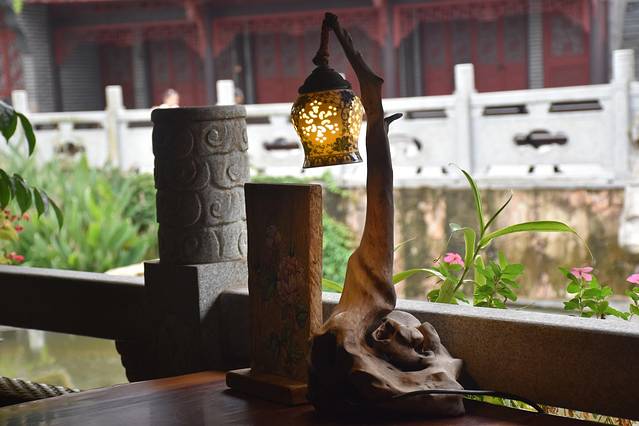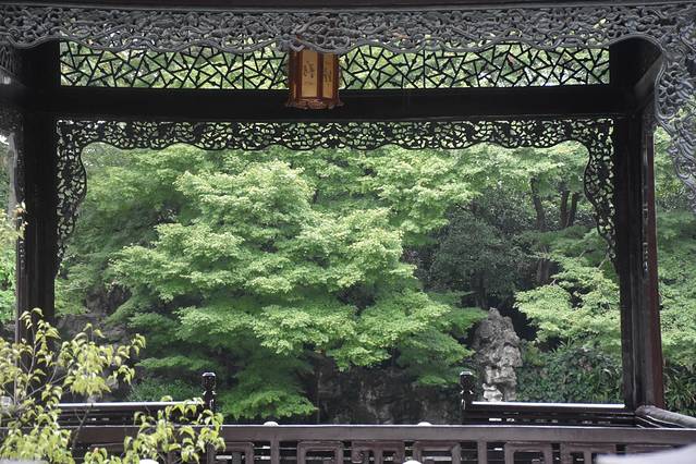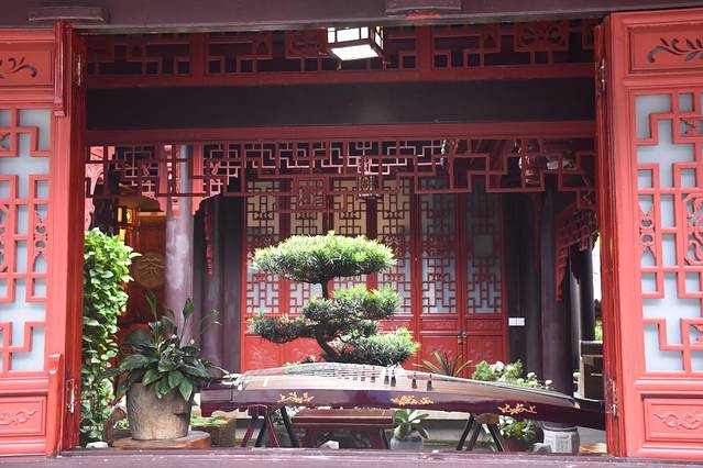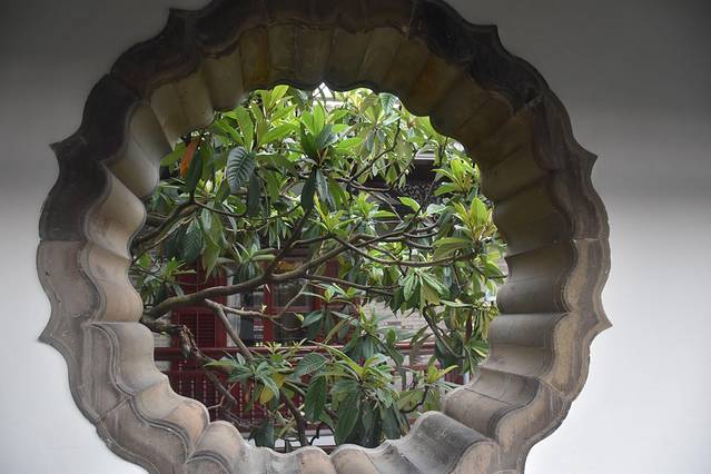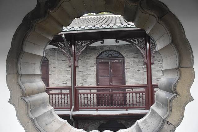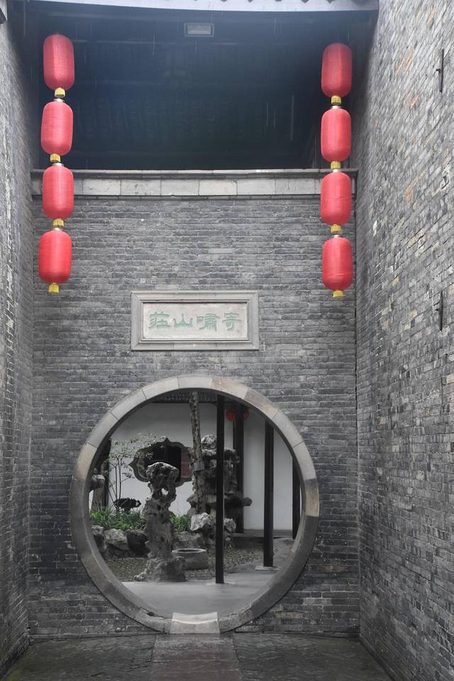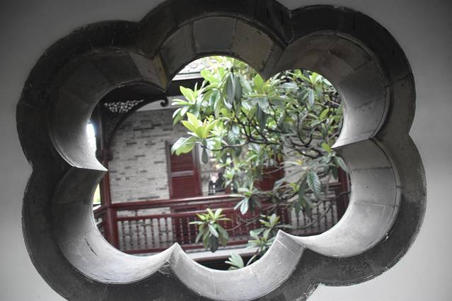 走入园子首先看到的就是贯穿全园的复道回廊,全长1500多米,被誉为中国立交桥的雏形。回廊,扬州人俗称串楼,分上、下两层,将东园、西园、住宅院落都串连在一起,廊东南两面墙上关有什锦洞窗和水磨漏窗。