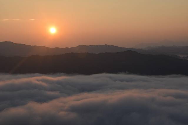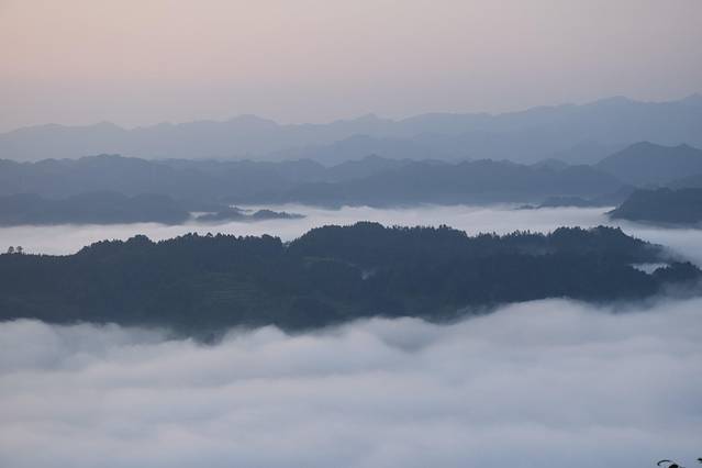 登上山顶,云雾飘渺。忽然浓雾弥漫,什么也看不到,忽然又全都散开,一切清晰可见。