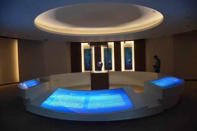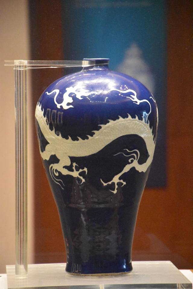 博物馆陈列面积184平方米,展厅仅陈列1件展品,即元霁蓝釉白龙纹梅瓶。该梅瓶属于元代景德镇窑蓝釉瓷器中的大型器物,造型秀美,蓝釉呈色鲜明纯正,腹部白龙环绕于瓶身,具有极强的艺术感染力,反映了元代景德镇窑的最高烧造水准。