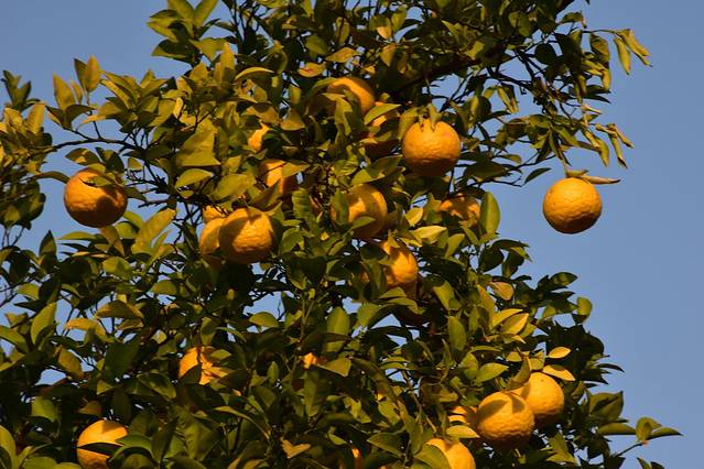 果然遍地都是橘子树,橘子树上挂得满满当当的都是橘子。