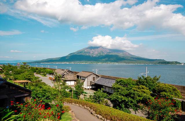 在鹿儿岛的第一站,我们来到岛津家族第19代家主岛津光久,在1658年建造的岛津家的别邸。最好看的还要算庭院了,这个庭院采用借景的手法将雄伟的樱岛作为园子里的山,将锦江湾作为园子里的水,一步一景美不胜收。