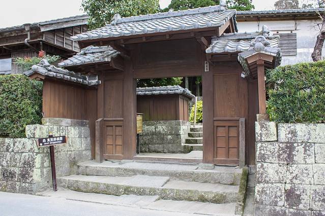 下面要抵达的武家屋敷也被称作“萨摩的小京都”,据史料记载,在江户后期这里曾经有将近500家武家屋敷。武家屋敷是指武士居住的房屋。藩政时代建造房屋被很好的保存下来,雅致怀旧的街景中,长700米砌筑工整的石墙延伸,沿道宅邸庭园整齐排列,造访这里竟然有种穿越时光的感觉。