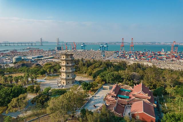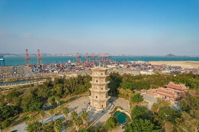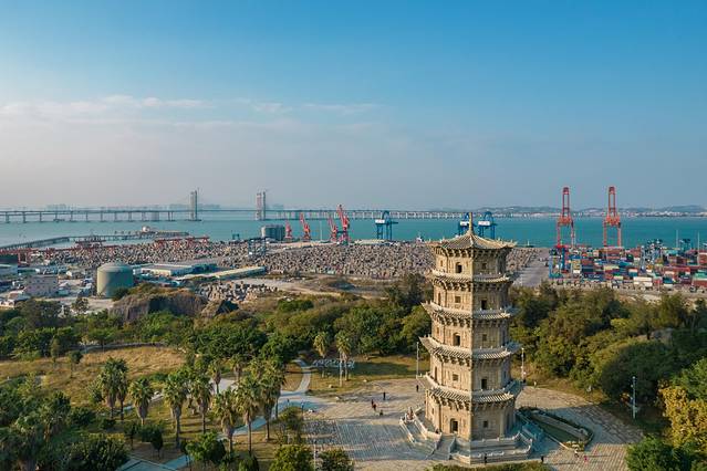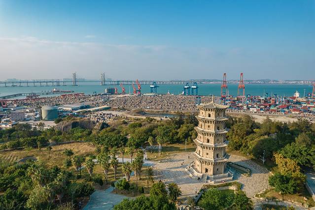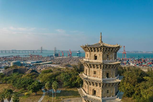 如今,在六胜塔下的石湖码头依旧是泉州最繁忙的货运码头之一。数百年的时光,如今的六胜塔已经不在承担引航的责任,但它依旧巍然屹立在泉州湾入海处,见证着泉州这座城市爱拼敢赢、向海而生的魄力。