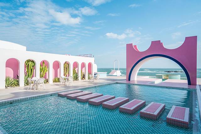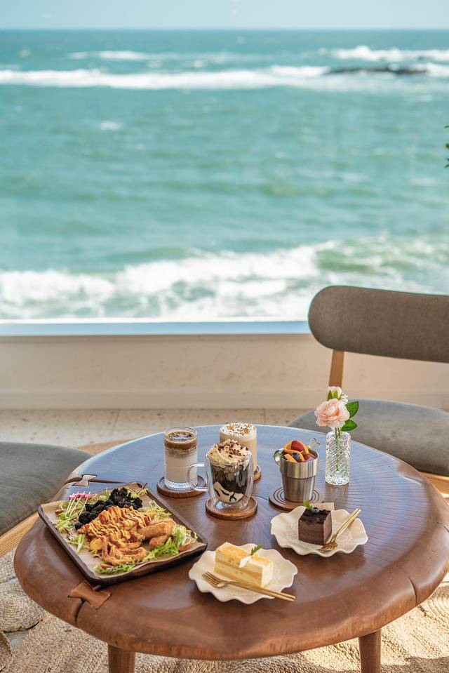 我最喜欢还是在咖啡馆里闲坐一个下午,点一份喜欢的甜点配上爱喝的饮品,在窗外的海浪击打礁石,看远处的白云掠过蓝天,好惬意。如果你想留宿一晚,北欧风的客房拥有无敌海景,第二天一早躺在床上就能欣赏一场绝美的海上日出。