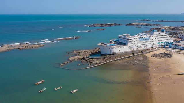 如今黄金海岸的“当红花旦”应该就属橘若咖啡民宿了。它在黄金海岸的最西侧,里面有咖啡下午茶、海景民宿和艺术馆。在这里,可以打卡迷你版“西班牙纪念碑谷”,午后阳光柔和的时候,随手拍都是红爆网络的照片。