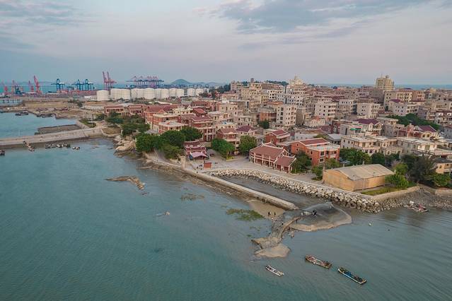 如今,海岸边是近几年新修起的城门,城内是闽南传统古厝、番仔楼和村民新居交错杂处。不过,村内还是保留了许多明清时期的老建筑,古城里的居民也依旧是过着简单朴实的生活。这里,并不像绝大多数的古城那般热闹,它更多是一座保留着原始生活气息的小镇。