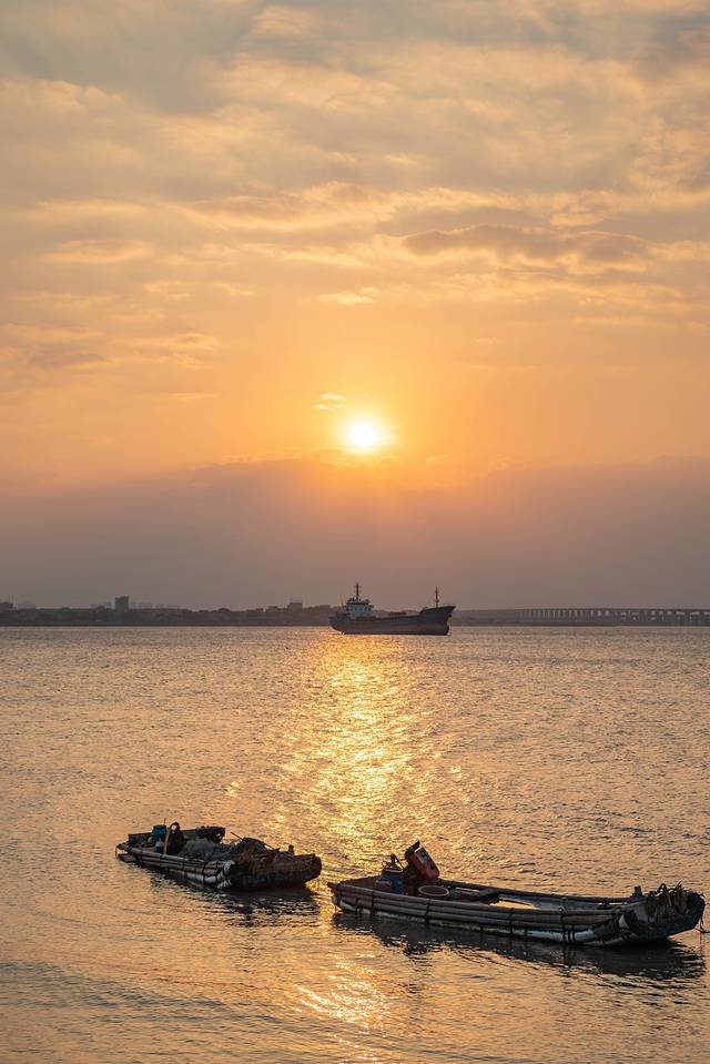 虽说林銮渡并不是泉州最适合欣赏夕阳的地方,但这里西沉斜阳为大海洒下的金黄还是非常唯美的。远处的跨海大桥、即将远航的大船,在落日的余晖之中是一种完全不同的感觉。