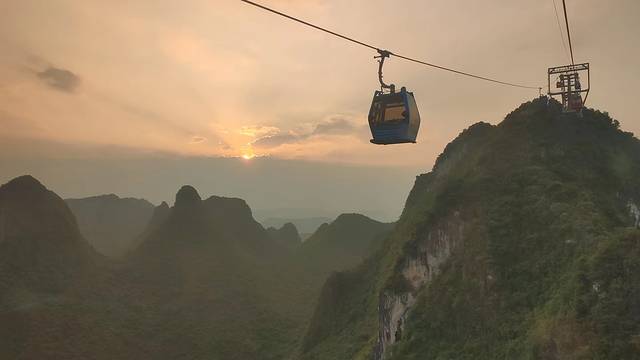 第二次乘坐缆车,但是和之前乘坐不一样的是,在如意峰缆车上能一览整个阳朔喀斯特全貌,一座座连绵的山峰景色非常壮美。