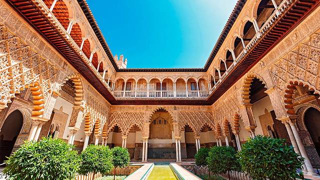阿尔卡扎尔王宫是塞维利亚最能展现摩尔人统治痕迹的建筑。在西班牙,凡名字以“AL”开头的建筑,几乎都是阿拉伯人留下的遗产。