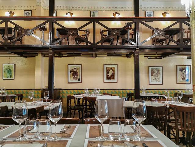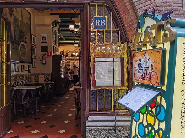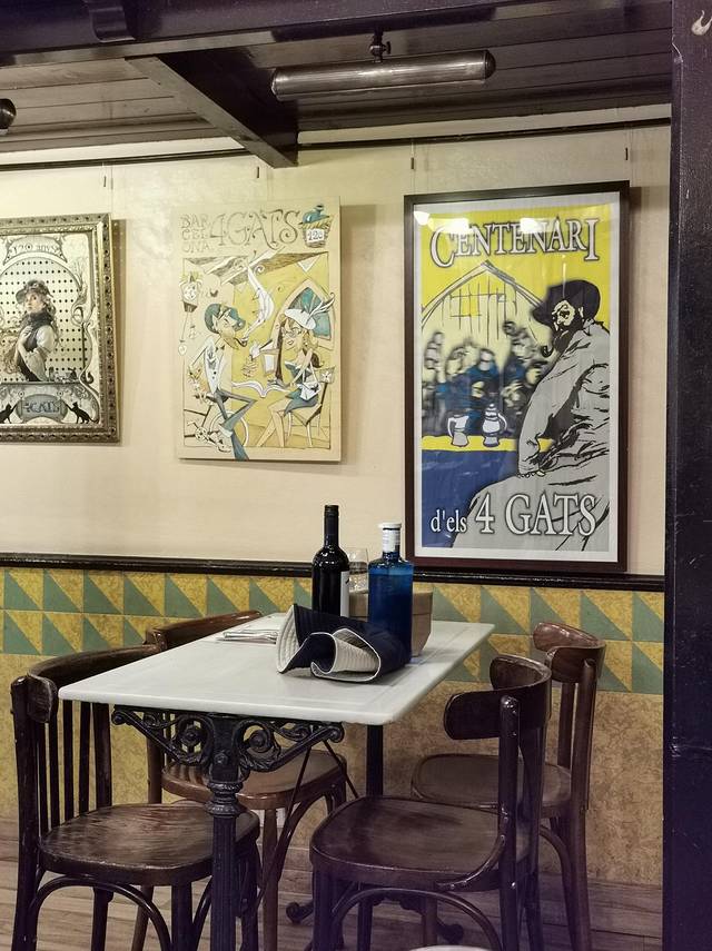 这间创建于1897年的餐厅叫做四只猫餐厅,是毕加索举办平生第一次画展的地方。它家的海报和菜单封面也是毕加索设计。