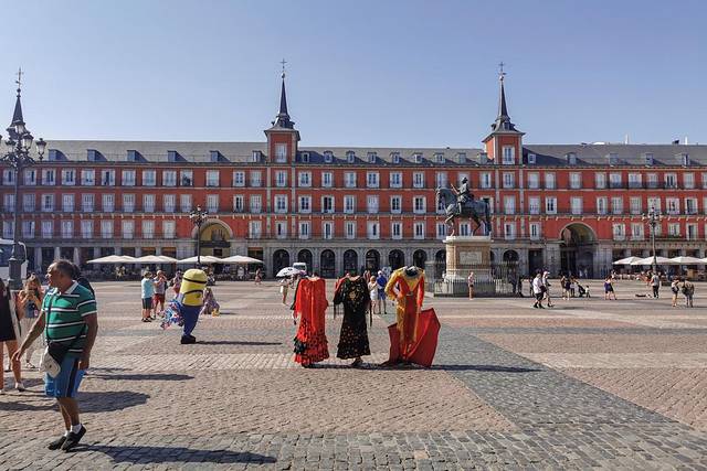 “马约尔”并非人名或地名,就是“major”的意思,意思就是“大广场”。跟西班牙广场一样,西班牙很多城市也都有马约尔广场,但最著名的理所当然是首都这一个。同其他首都广场一样,这里曾举办过各种民间庆典、斗牛、加冕和一些宗教仪式。但又如巴黎的协和广场,马德里的马约尔广场也曾是个行刑的地方。那些嘴硬的新教徒,就在广场中间,在群众的围观之下,被行刑处死。