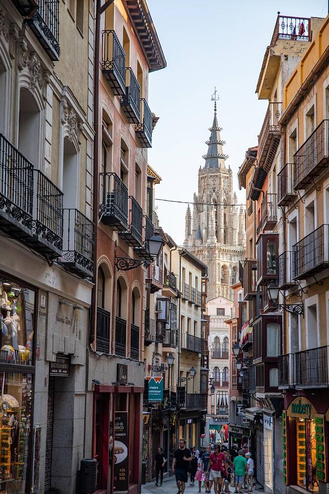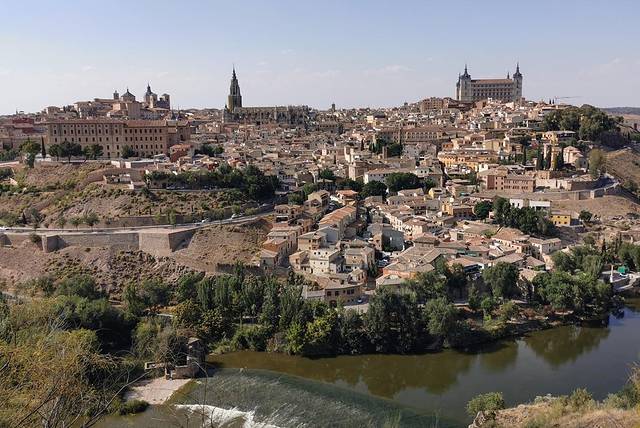 托雷多是一座建在岩山上的小城,如今我们看来是座小城,当年可是西哥特时代西班牙的首都。它高耸在岩山上,脚底被河流环绕,居高临下的险峻地势或许是它被西哥特人选为首都的原因,但也它难以扩张发展被马德里取代的原因。