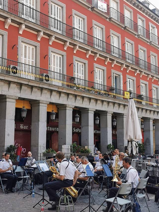 我们来到的马约尔广场的时候,一个管弦乐队正在排练,清晨的阳光还不算炙热,广场上闲散游走的游客很多。或许是来得太早,围绕广场一周本应琳琅满目的商铺都还没开门。