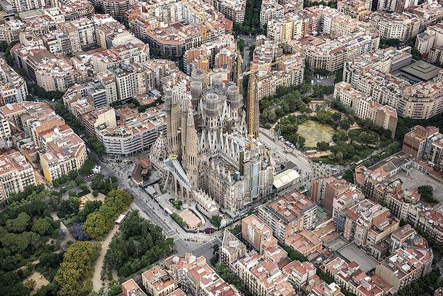 作为教堂,圣家堂的造型是怪异的反常的,但却奇怪的与城市毫无冲突,又或许是高迪就是有本事让世人接受他制造的冲突。我还是那个看法,伟大的建筑一定要从空中俯瞰一次。如果你从空中俯瞰圣家堂,你会觉得它不是被建造在巴塞罗那,而是生长在巴塞罗那。