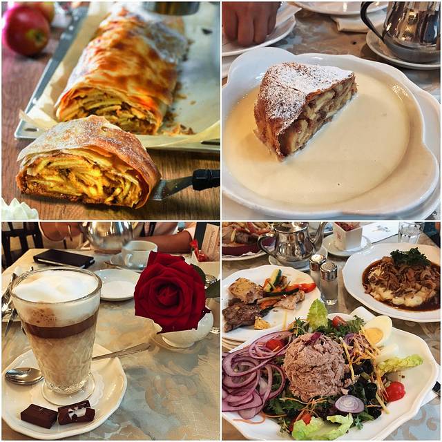尝试这款甜品的最佳餐厅,是美泉宫的咖啡店Residenz,在这里不仅可以吃到美味苹果卷,还可以报名学习如何制作。我们也是因为躲雨,歪倒正着的进了店,在这里尝试过Wiener Apfelstrudel后,再尝试别家的,果然味道次一些。