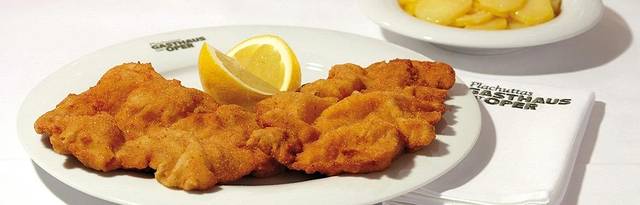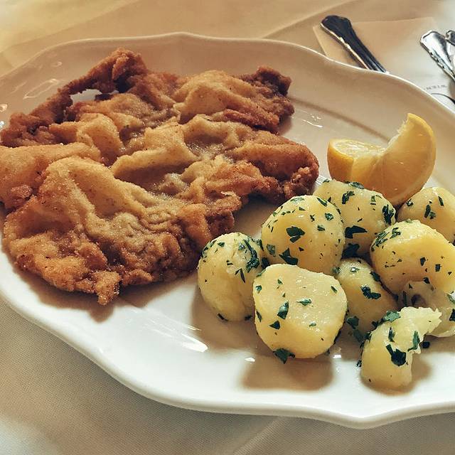 你们能理解一个正在减脂的人面对这道菜的心情吗?造物者为了不让人类生活得太过安逸的腹黑设计,带来满足感的美味食物几乎都是高热量,尤其是油炸食品。这道最能代表奥地利的Wiener Schnitzel正是如此。