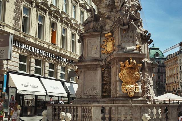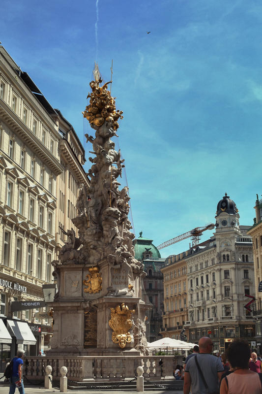 1679年黑死病夺去了几乎三分之二维也纳人的生命,神圣罗马帝国的皇帝利奥波特一世下令建造这尊纪念柱,以祭奠黑死病中死去的受难者。它在格拉本大街正中心,是欧洲最大的黑死病纪念柱。