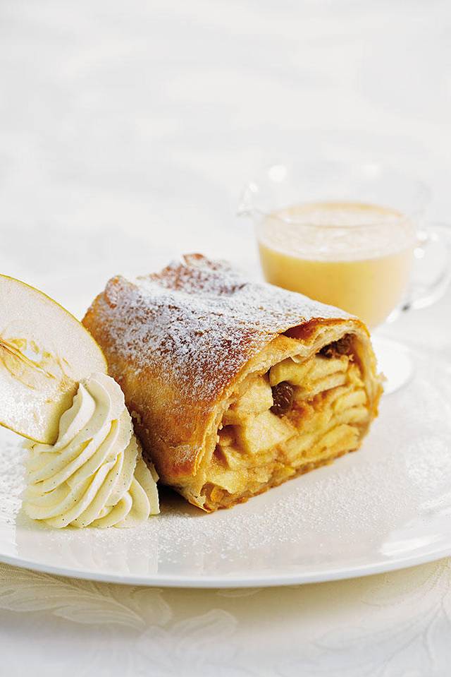 这是奥地利最为知名的甜品之一,上至茜茜公主夫妻俩的精致宴会,下至贫民百姓的日常饭桌,都有它的身影。遇到它之前,我的最爱是提拉米苏。没有对比就没有伤害,遇见更好的,立刻将旧爱下放到第二名。但满世界都有提拉米苏,Wiener Apfelstrudel却只在奥地利,最爱总是如此朝思暮想却不可得。