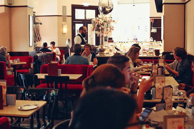 可以想象那个年代维也纳咖啡馆里的气氛,每天接待众多如今闻名于世的画家、音乐家、作家、演员、舞者,和后来成为伟人的革命者。众人在咖啡馆里相会、讨论或争论,一些聚会甚至会持续到凌晨。如果穿越回到那时维也纳,我哪里也不去,就安静的坐在咖啡馆最角落的位置,拿起一份看不懂的德文报纸挡住脸,暗中观察当时根本不知世界政局会如何变幻的他们,在咖啡馆里为了“被贬低的尼采”争的面红耳赤;或许还会看到两位建筑师发生的口角,其中一位指着加了奶油的咖啡对另一位说,“我和你之间唯一的共同点就是都爱喝这款咖啡!”