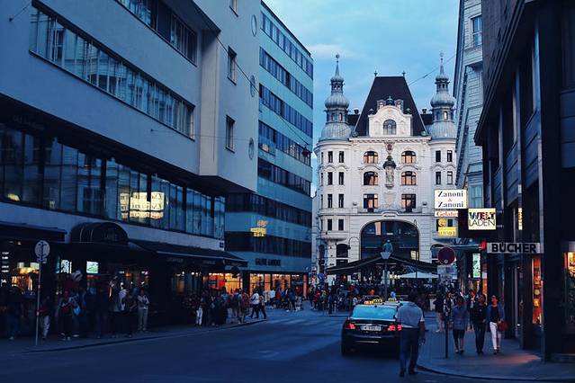 教堂附近的景点,每个小时,钟面上会出现一个维也纳历史人物的木偶,到了中午12点,它会响起音乐,12木偶会依次现身。如果你时间不充裕,或者你看过布拉格那个精美绝伦的天文钟,那这个由安卡保险公司出资建造的安卡钟就不必去了。不过安卡钟附近的街道夜幕时分挺美。
