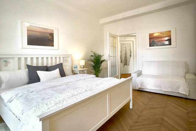 我定的酒店或民宿从来都是广受好评(其实也没几个人)。这次在维也纳的民宿定得非常好,连当地向导都赞不绝口。地理位置尤其好,在维也纳分离派、博物馆咖啡厅和纳什市场附近,离老城区主要景点和交通枢纽步行十分钟左右。街区整洁宁静,楼下有个奇怪的书店,白天大门紧锁,到了日落时分才会看到一位气质出众老太太在里面静静的等候客人光临。