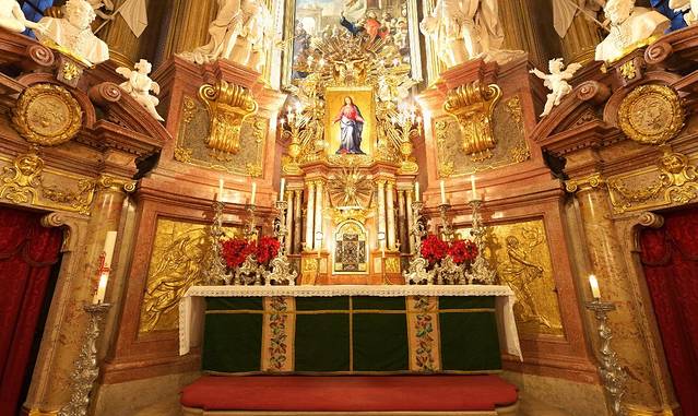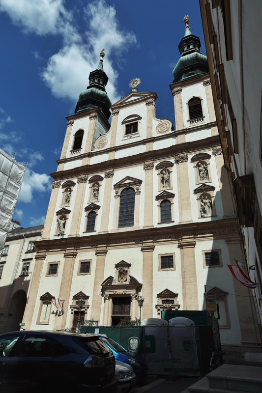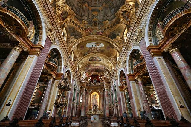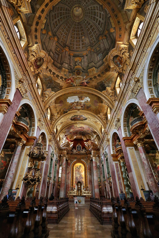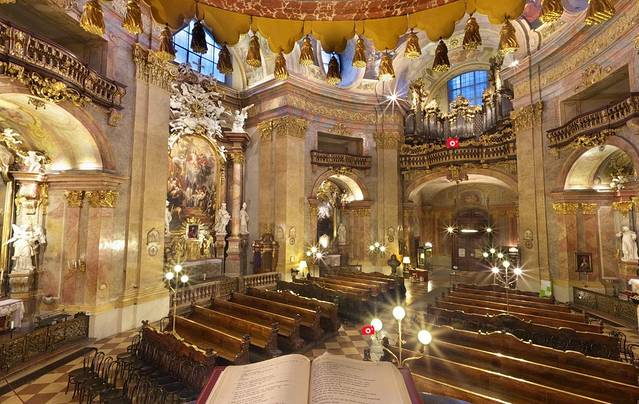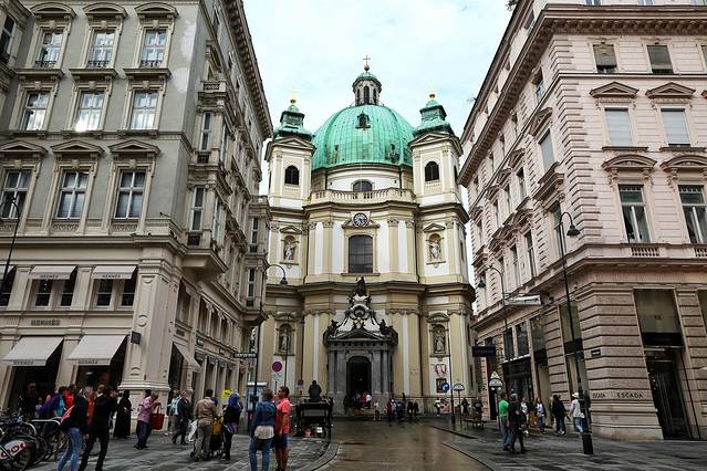 维也纳人称圣斯蒂芬大教堂是“维也纳的心脏”,其中一个原因是因为它的地理位置在维也纳内城的中心,其实就地图看来,地理上的中心应该算是圣伯多禄教堂,站在这个街区附近几乎每一个角落都能看到它。它的前身追溯起来就更早了,我不想说,反正你们也不看字,总之后来在奥地利一个以巴洛克风格成名的宫廷建筑手中,成为经典的巴洛克风格教堂。这个建筑师就是为欧根亲王设计美景宫的建筑师。他名字太长了,我记不住。