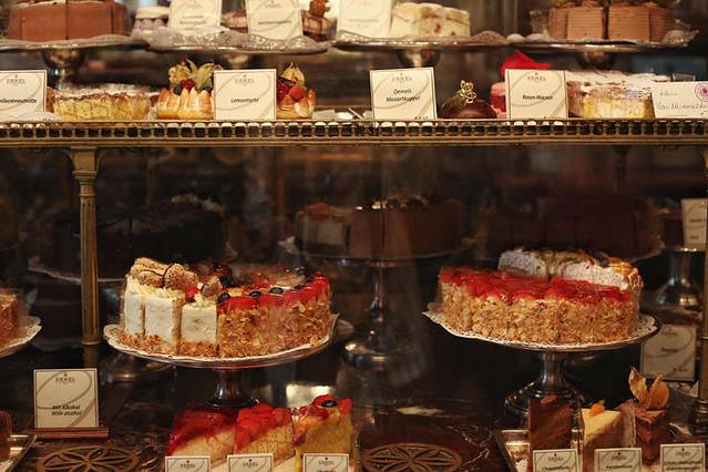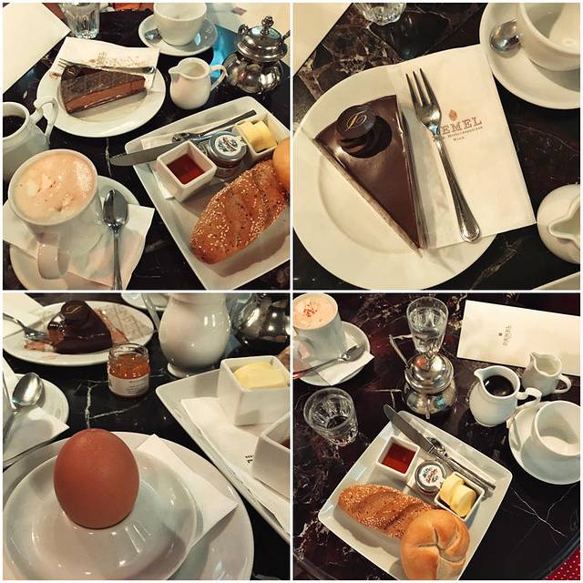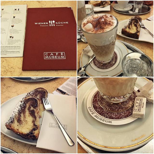 我来过两次,价格跟国内咖啡厅不相上下,咖啡5欧左右。第一次是某天的brunch,点了茜茜公主丈夫约瑟夫皇帝最爱的蛋糕Gugelhupf,像帽子一样的形状,切片开来,内侧有大理石纹。