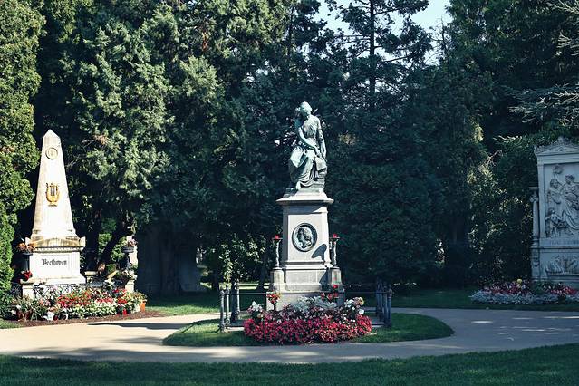 维也纳中央公墓之所以声名远播,是因为这里安葬着莫扎特、贝多芬、海顿、舒伯特和大小施特劳斯等享誉世界的音乐家。他们都被葬在32A荣誉墓区里,唯独莫扎特因遗骸无从找寻,既没有墓地也没有墓碑,只有一座纪念碑以供后人吊唁。这里离城区很远,如果没有音乐家情结,建议不必到这里。